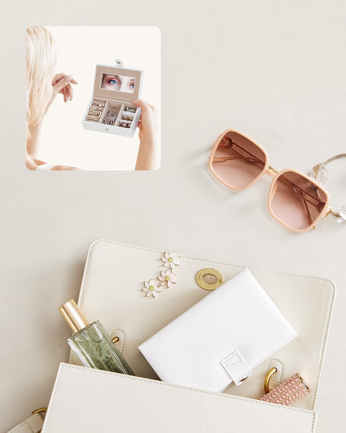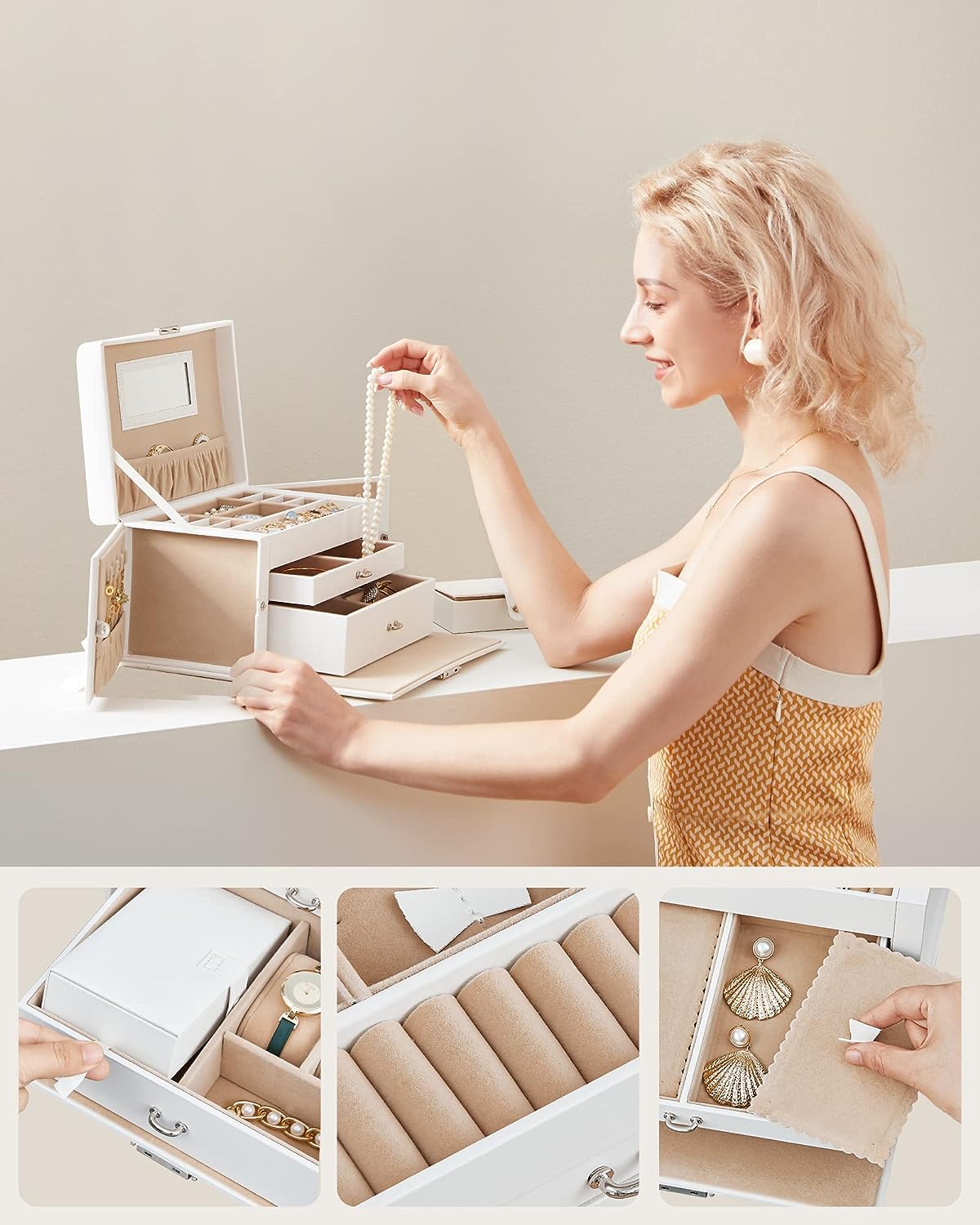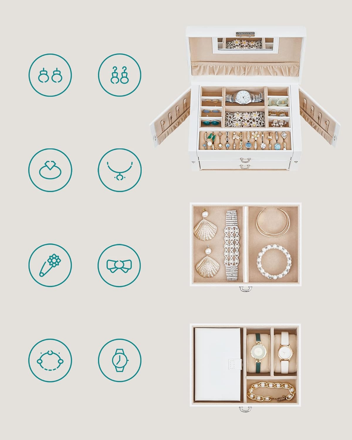 - praktycznego lusterka umieszczonego na górnej pokrywie szkatułki.