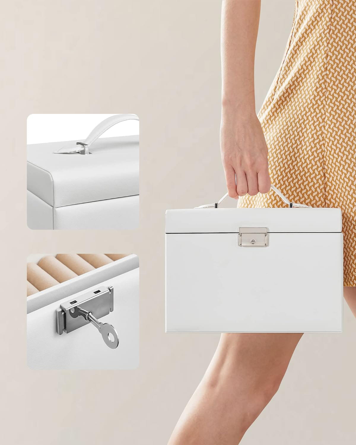 Szkatułka jest zamykana na kluczyk, co stanowi ochronę dla Twoich kosztowności.
