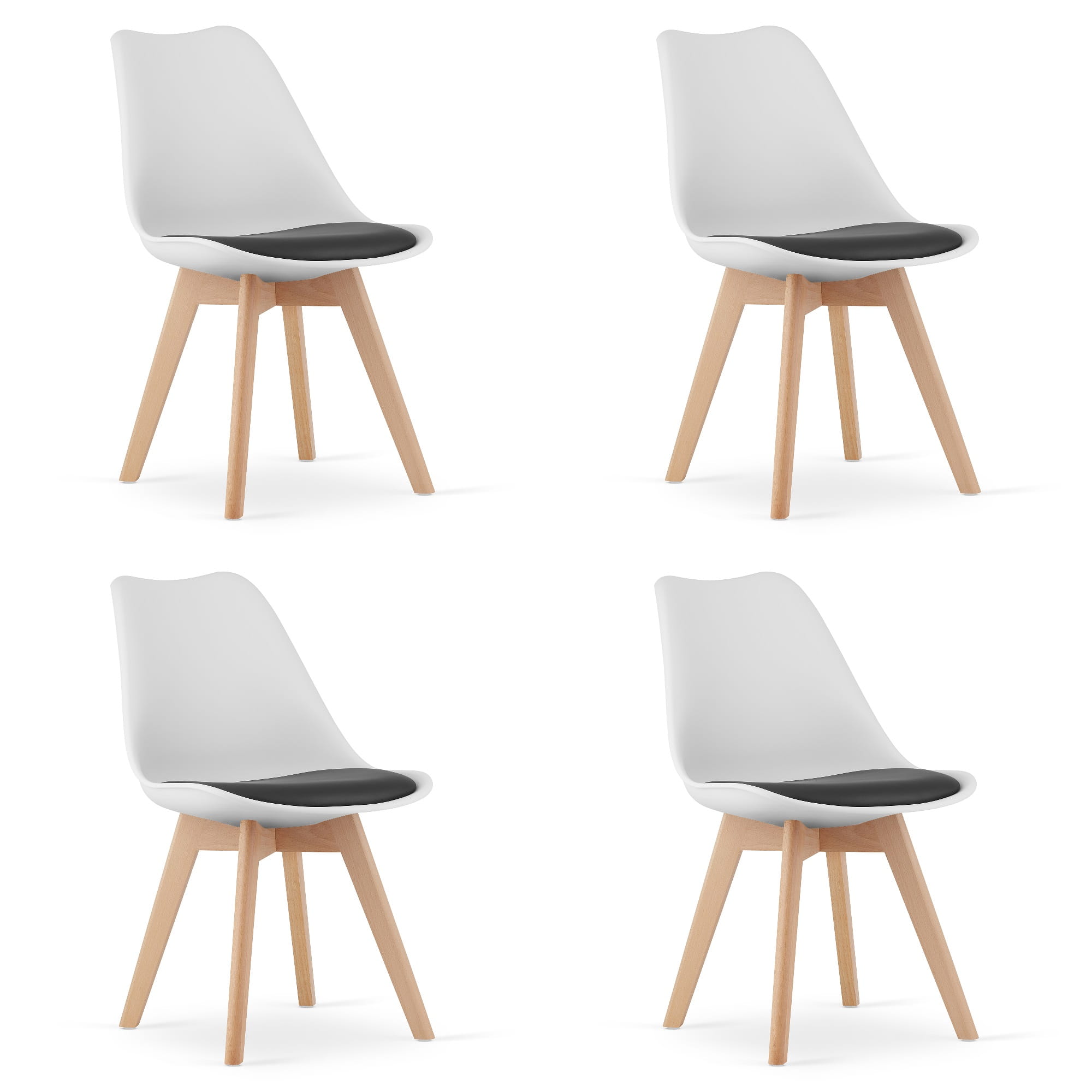KRZESŁO MARK - BIAŁO-CZARNE - NOGI NATURALNE - 4 SZT