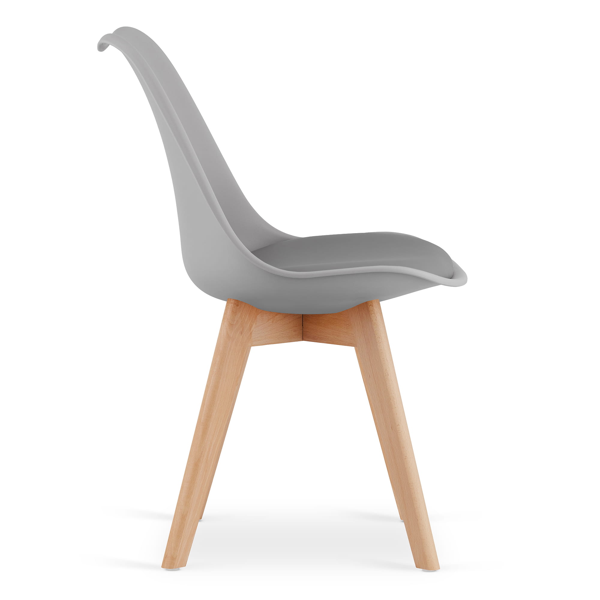 Siedziska krzeseł MARK są wykonane z trwałego polipropylenu i uzupełnione miękkimi poduszkami z ekoskóry, które zapewniają wysoki komfort użytkowania. Drewniane bukowe nogi gwarantują stabilność i trwałość, a ich subtelny wygląd doskonale współgra z różnorodnymi aranżacjami wnętrz.