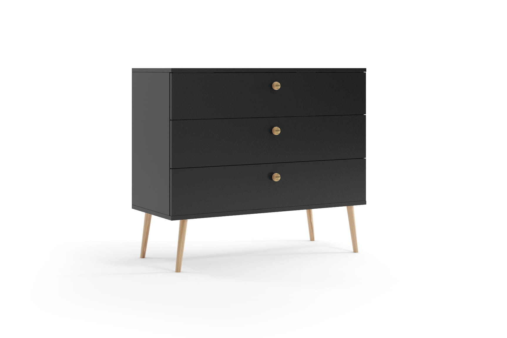 Dopasowane drewniane nogi: Komoda BOHO posiada 4 nogi z litego drewna, które idealnie komponują się z pozostałymi meblami z kolekcji. Nogi są sztywno zamocowane, zapewniając stabilność i ochronę podczas przesuwania po podłodze.