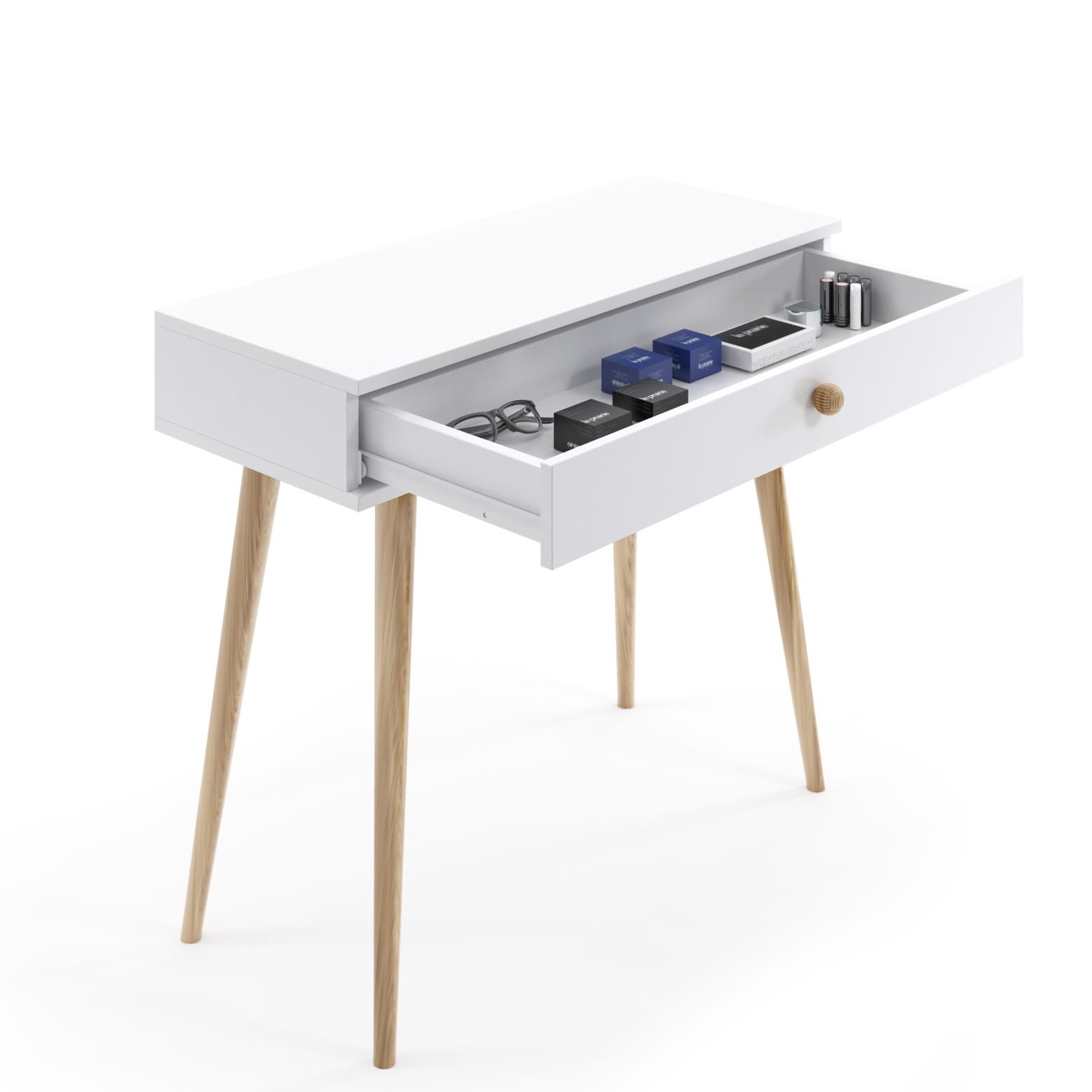 Konsola BOHO z szufladą na wysokich drewnianych nogach - Biały mat