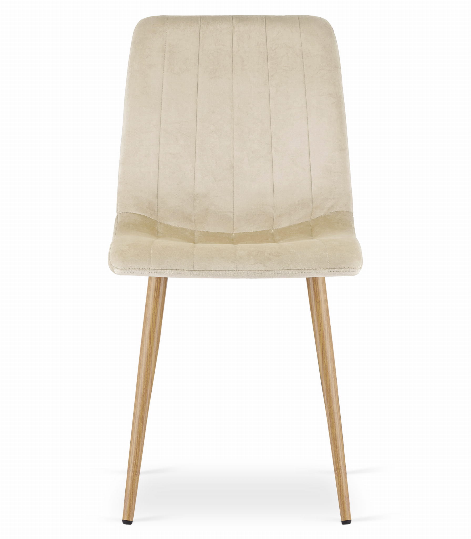 Krzesło LAVA - jasny beż aksamit / nogi kolor drewna x 4
