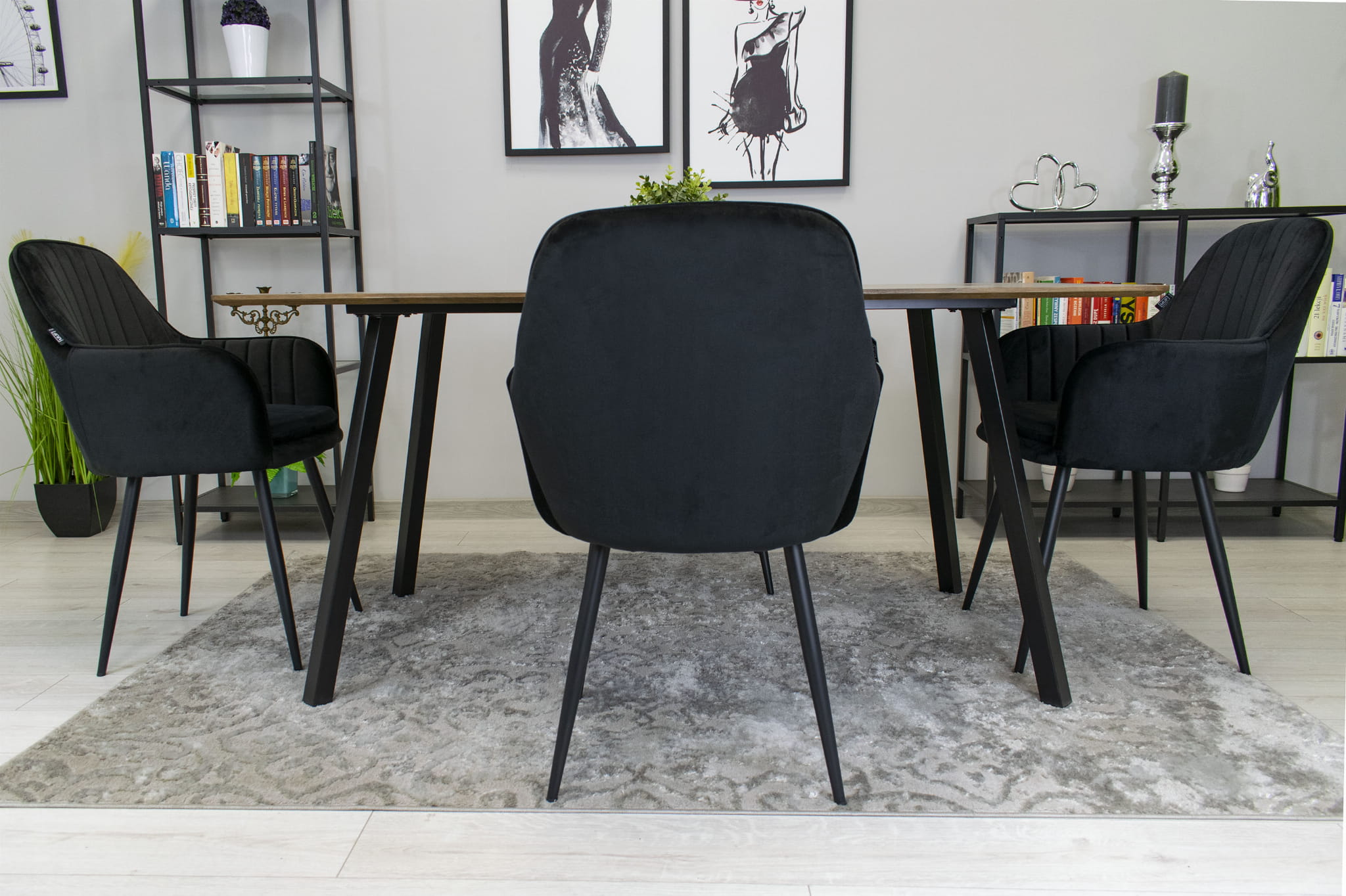 Krzesło LUGO - aksamit czarny / nogi czarne x 2