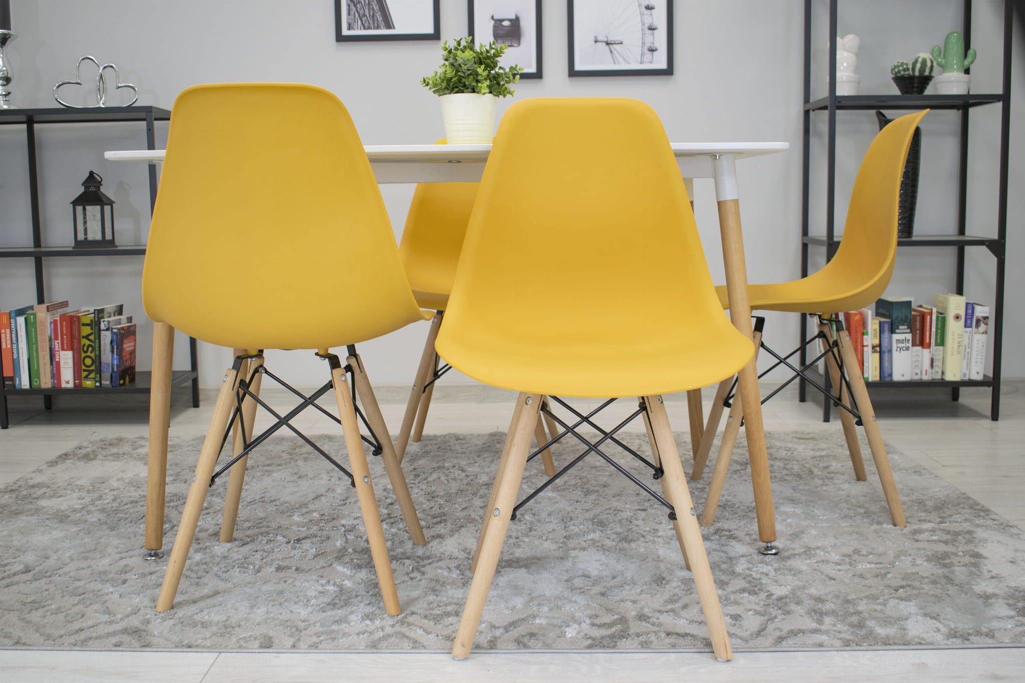 - krzesło dostępne jest w kolorze MUSZTARDY Z NOGAMI W KOLORZE NATURALNYM