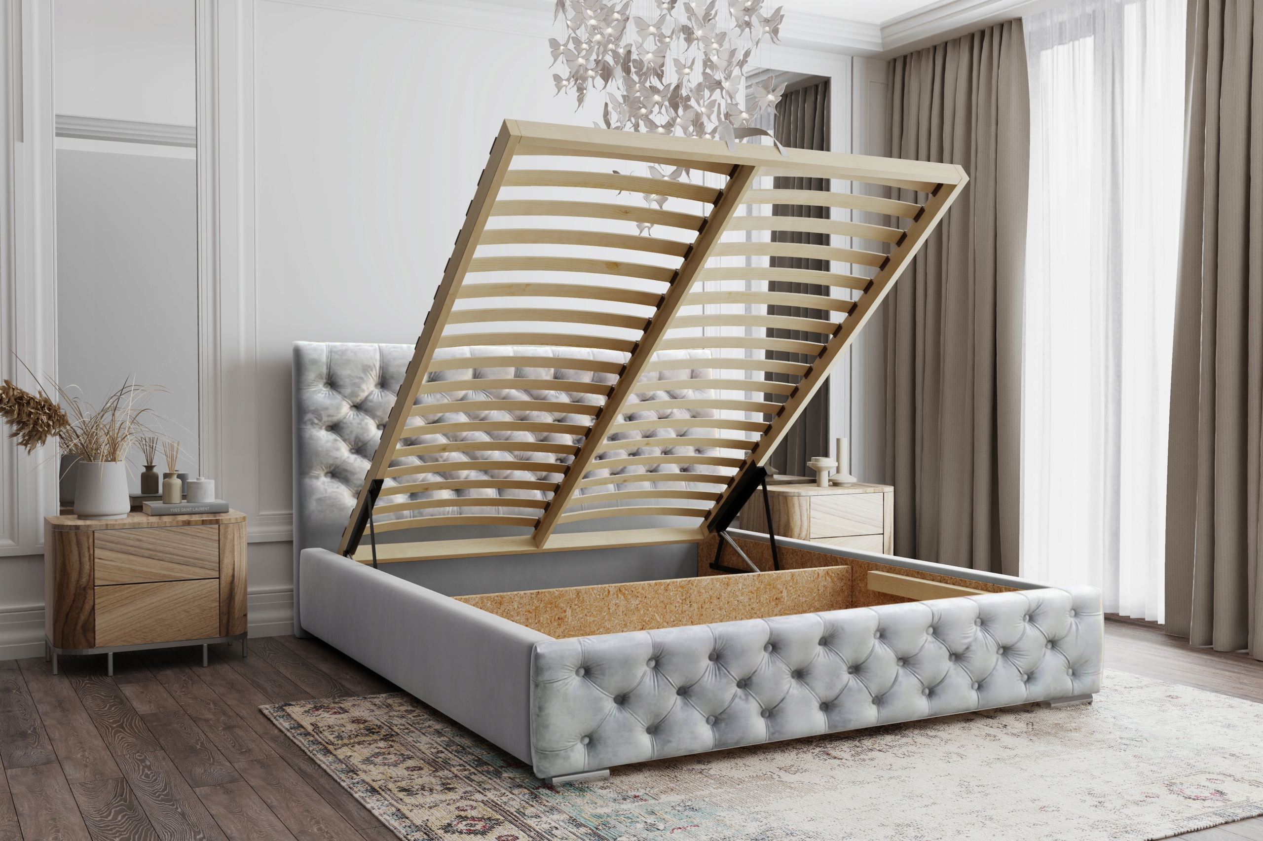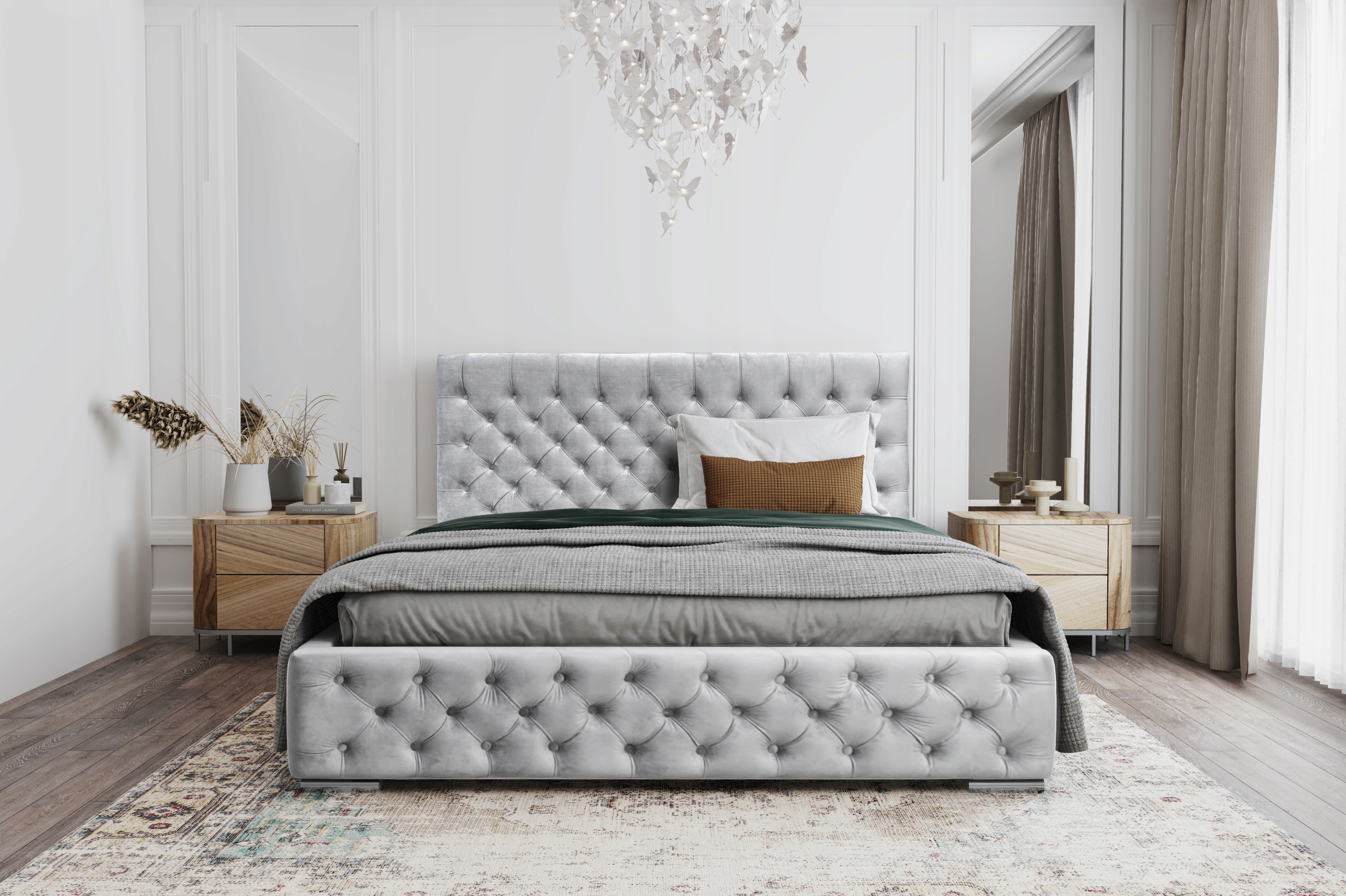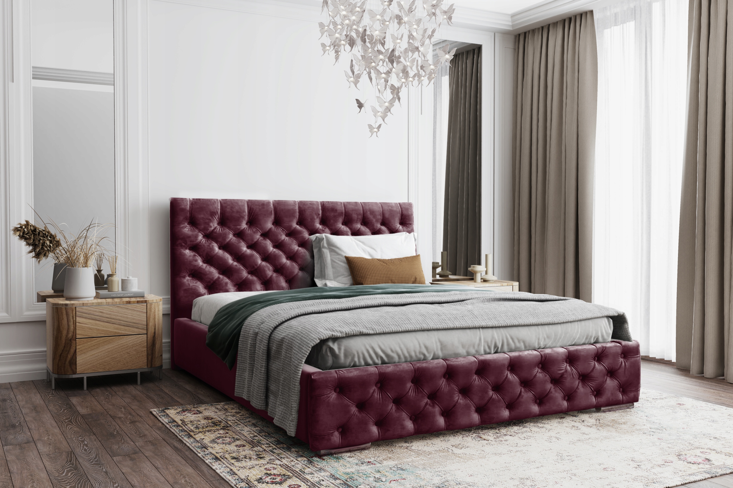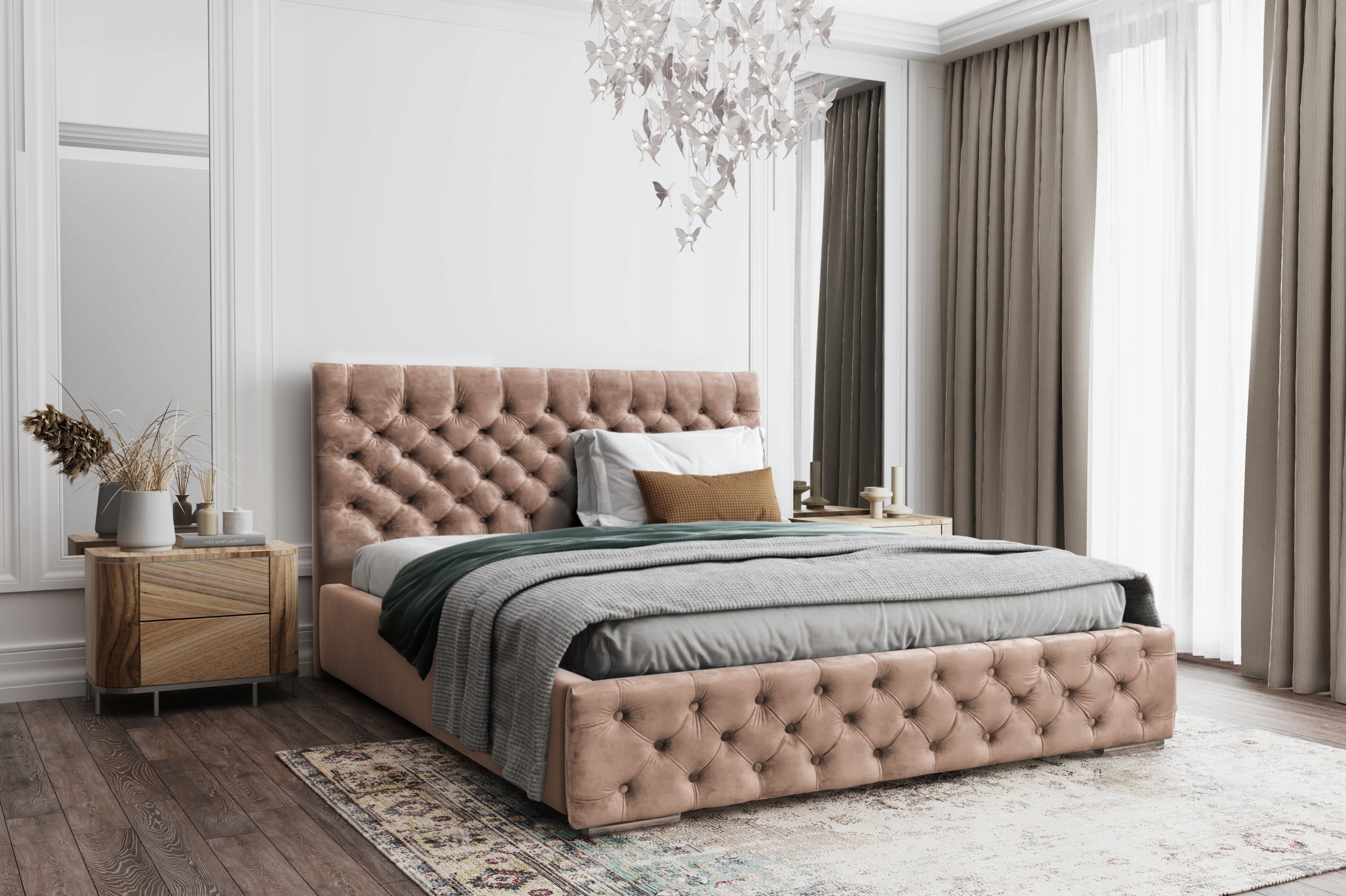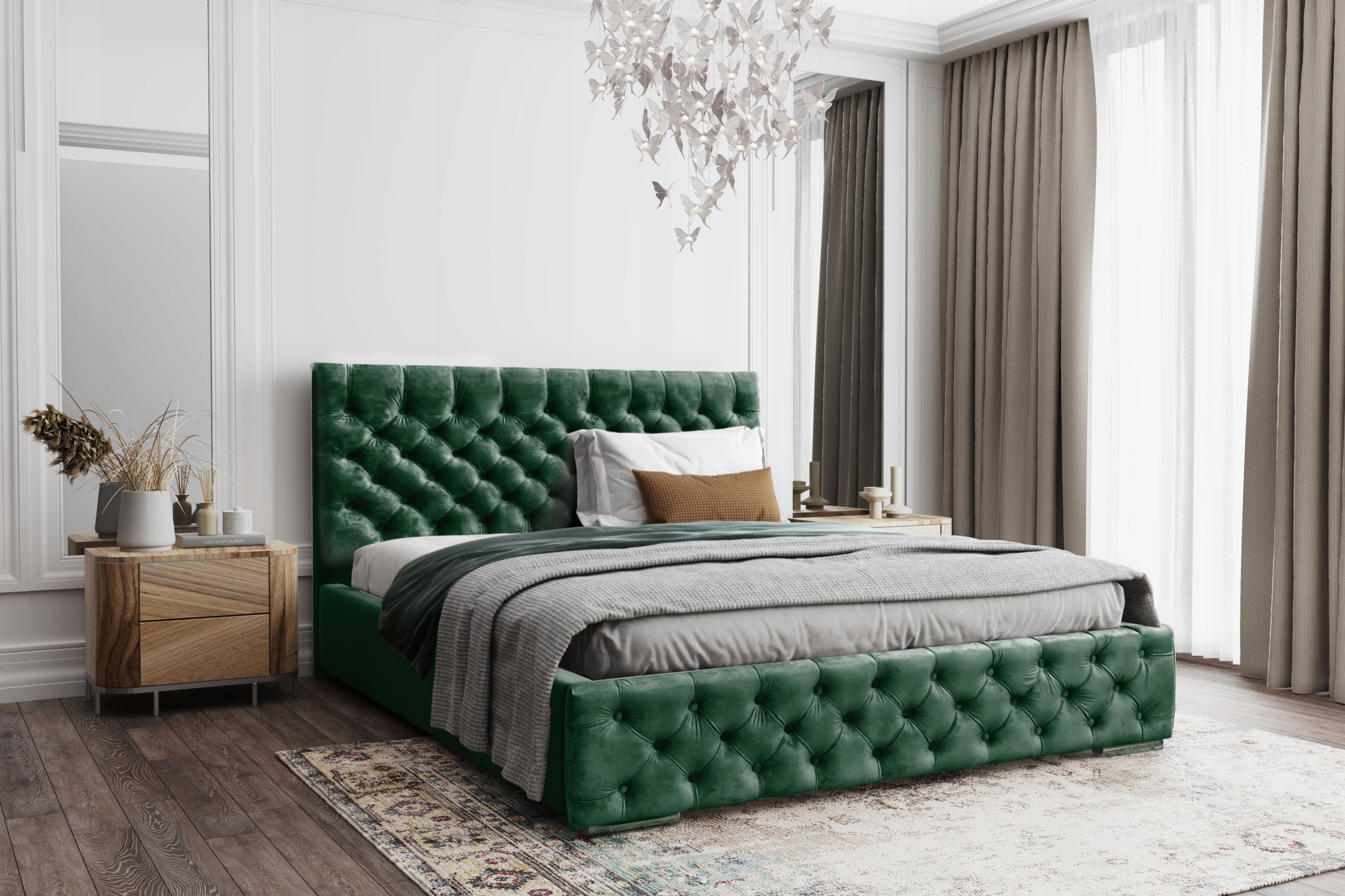 *Wysoki zagłówek oraz przód łóżka w stylu "chesterfield",