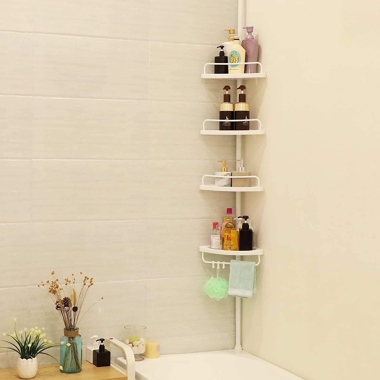 Regał cechuje się uniwersalnością oraz funkcjonalnością, będzie świetnie pasował zarówno do niskich jak i wysokich łazienek. Dzięki teleskopowemu mocowaniu możną ją z łatwością zamocować pomiędzy podłogą a sufitem bez konieczności wiercenia w ścianie.