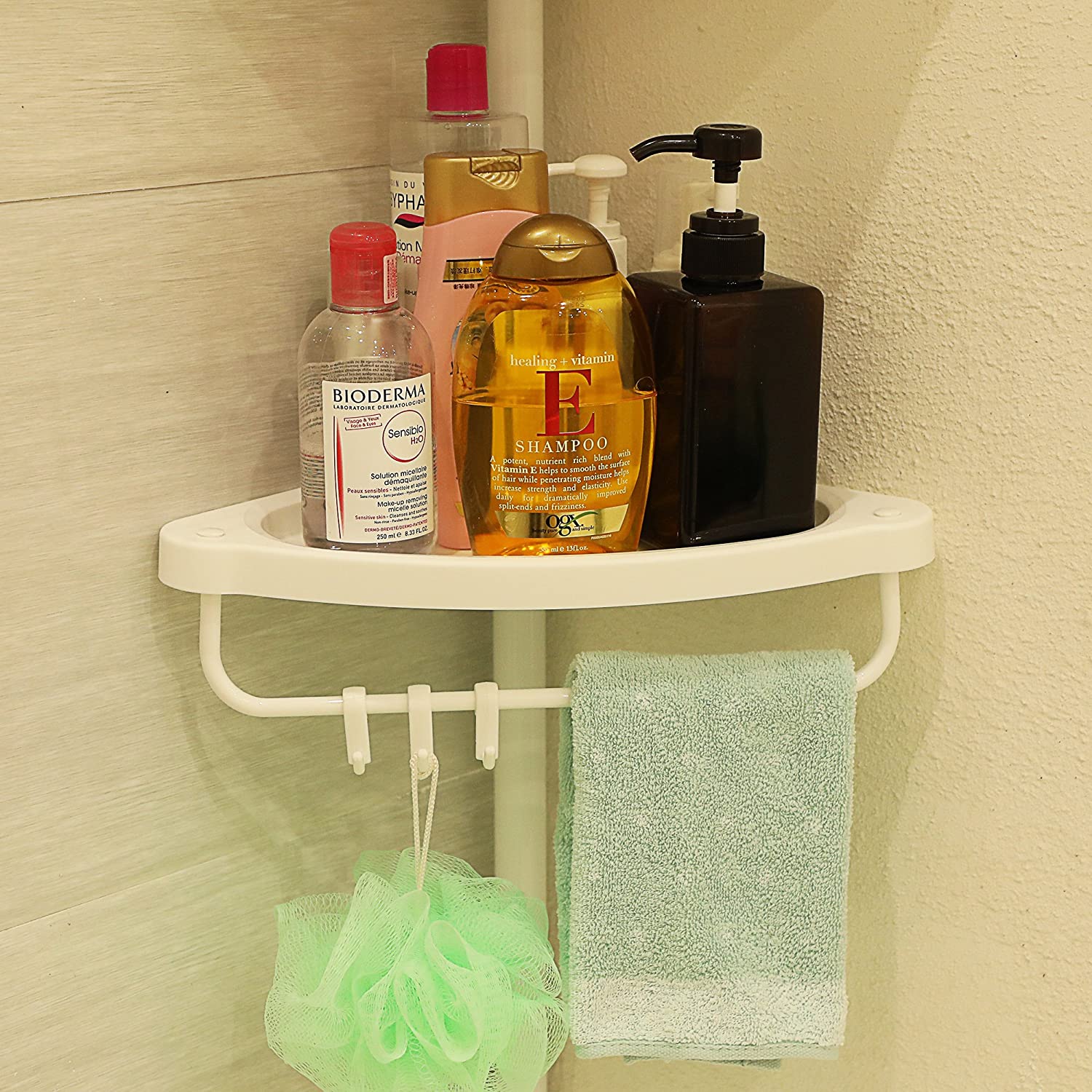 Jedna z półek została wyposażona w uchwyt na ręcznik oraz 3 haczyki.