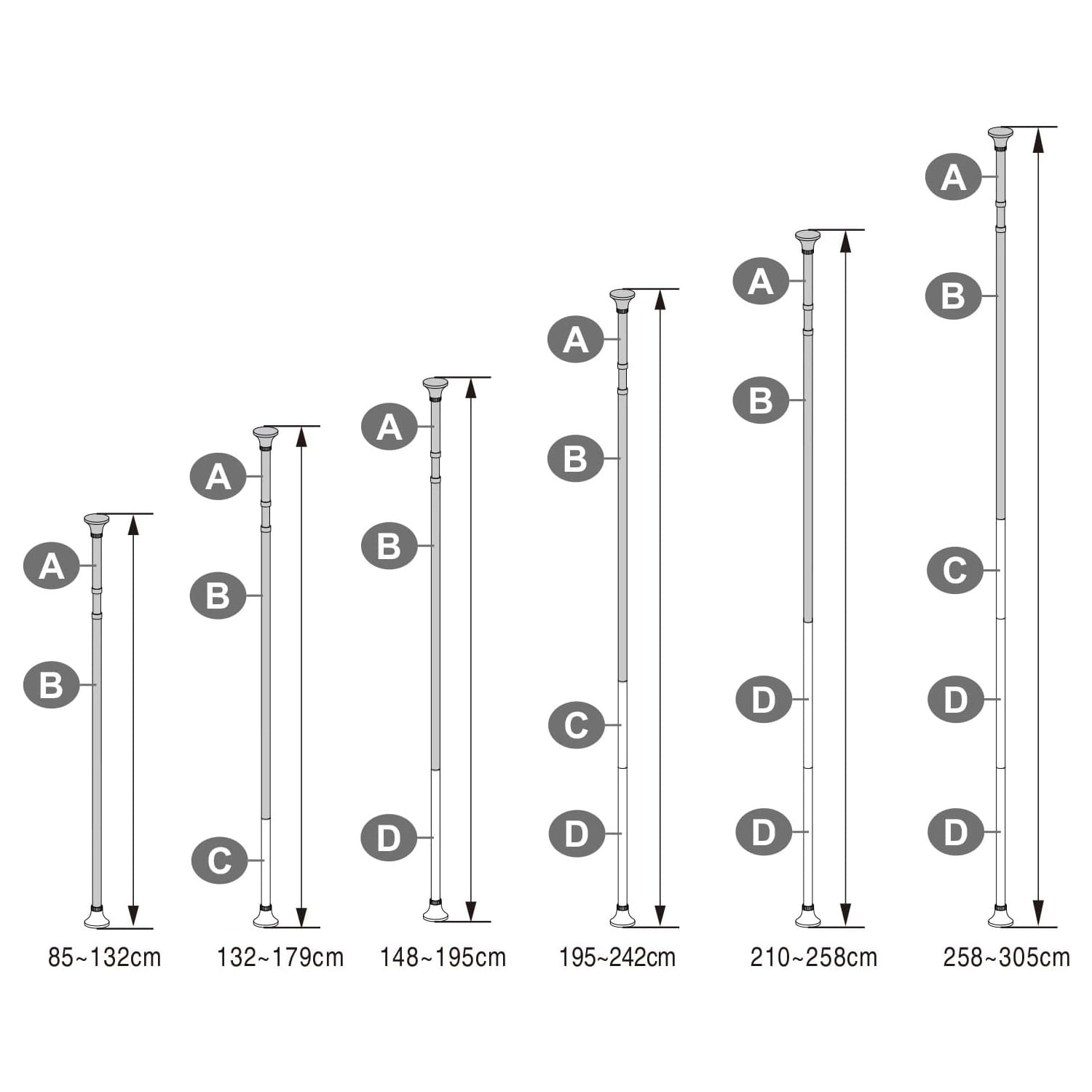 - Regulacja wysokości: od 85 do 305 cm