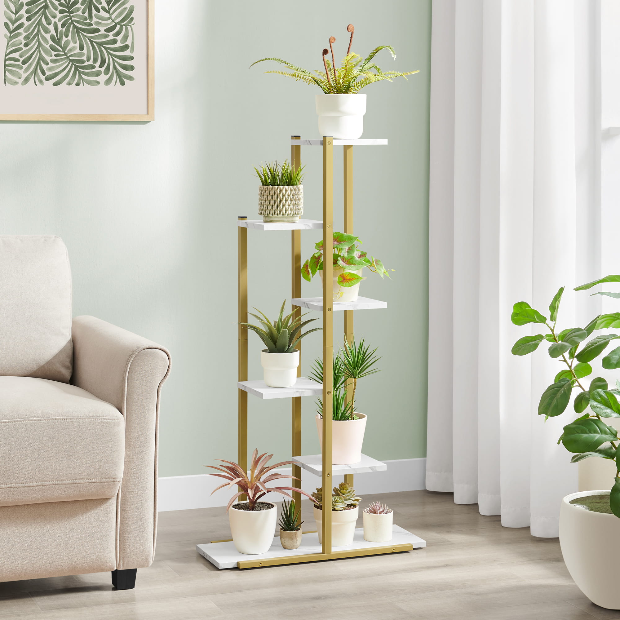 Regał kwietnik 6 półek - marmur / nogi złote