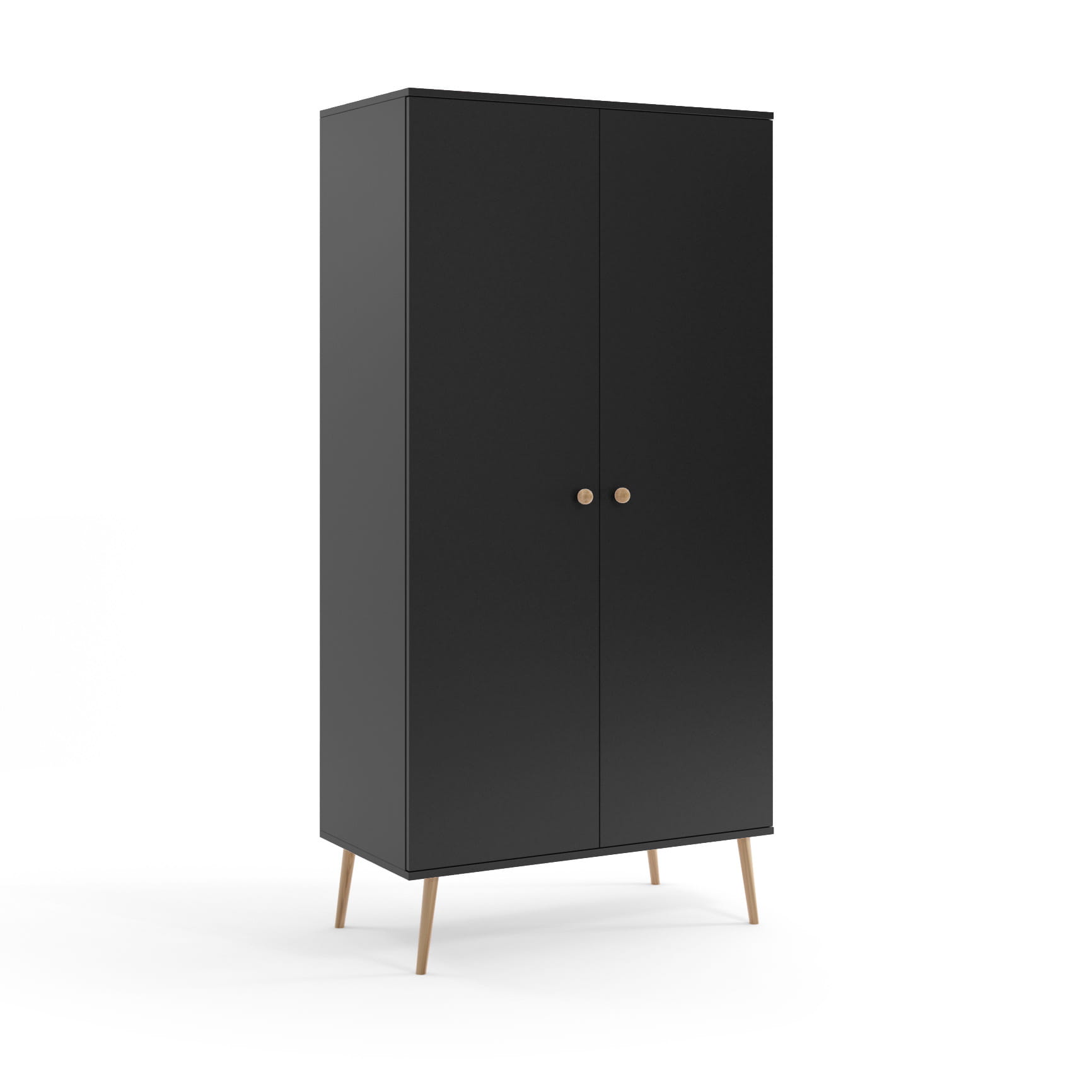 Szafa w stylu skandynawskim to doskonałe połączenie minimalistycznego designu i funkcjonalności. Wysokie nóżki z litego drewna doskonale komponują się ze sznurkowymi uchwytami i oryginalną kolorystyką płyty. Drzwiczki lekko się otwierają i cicho zamykają dzięki wysokiej jakości zawiasom z cichym domykiem. Całość wykonana jest z wysokiej jakości materiałów, dbając o najmniejsze detale. Wszystkie elementy są precyzyjnie spasowane, co ułatwia montaż. Kolekcja szaf wykonana jest z płyty meblowej o grubości 18 mm, co zapewnia trwałość i długotrwałe użytkowanie.