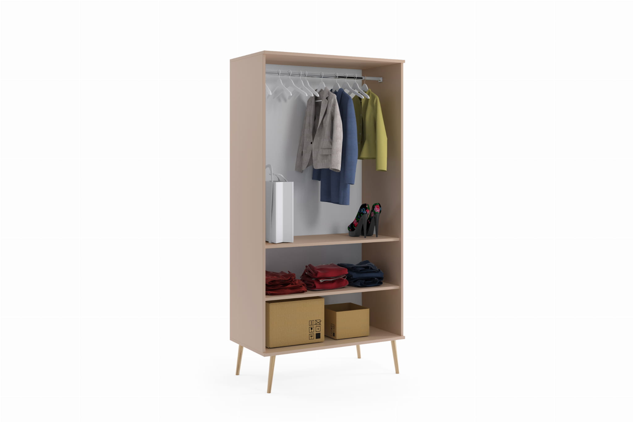 Szafa BOHO na drewnianych nogach - 2 półki i drążek - Róż naturalny