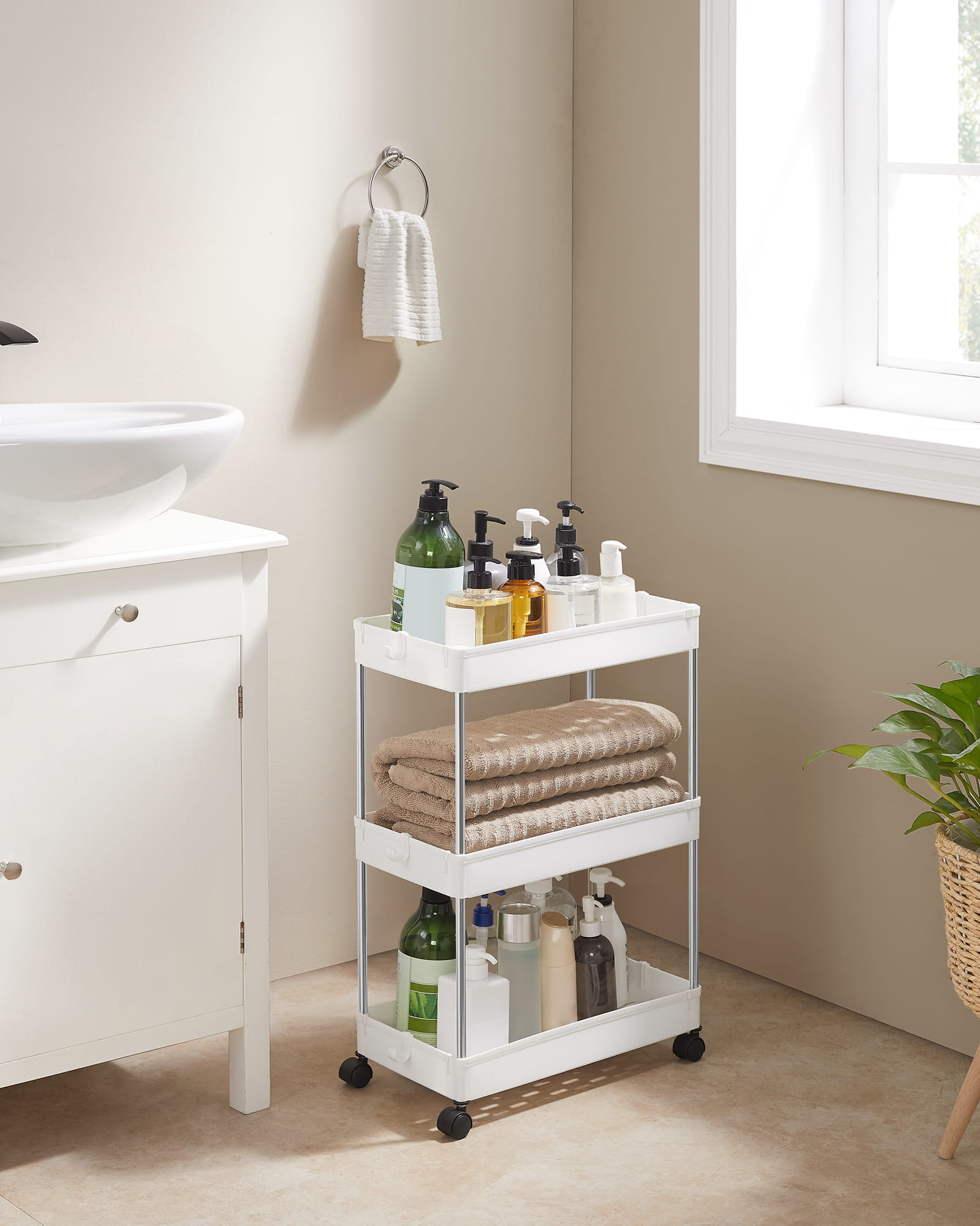 Rewelacyjna mobilna szafka na kółkach idealna do łazienki, kuchni, spiżarni. Szafka została stworzona tak, aby maksymalnie zagospodarować wąskie przestrzenie. Dzięki niej zyskujemy dodatkową przestrzeń, pomaga nam również utrzymać porządek w domu.