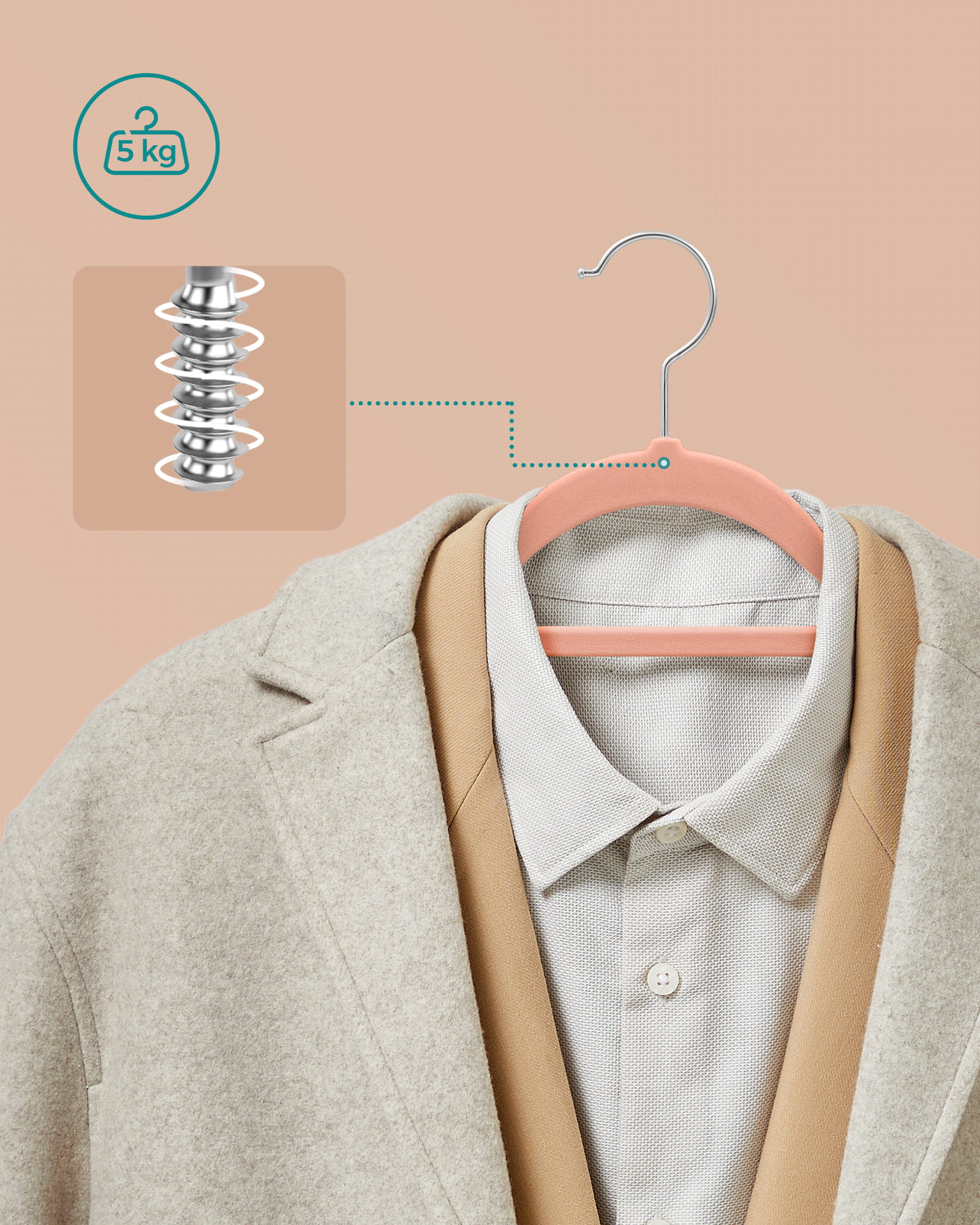 Idealnie wyprofilowany kształt wieszaka przypominający ludzkie ramiona, sprawi, że Twoje ubrania nie odkształcą się.