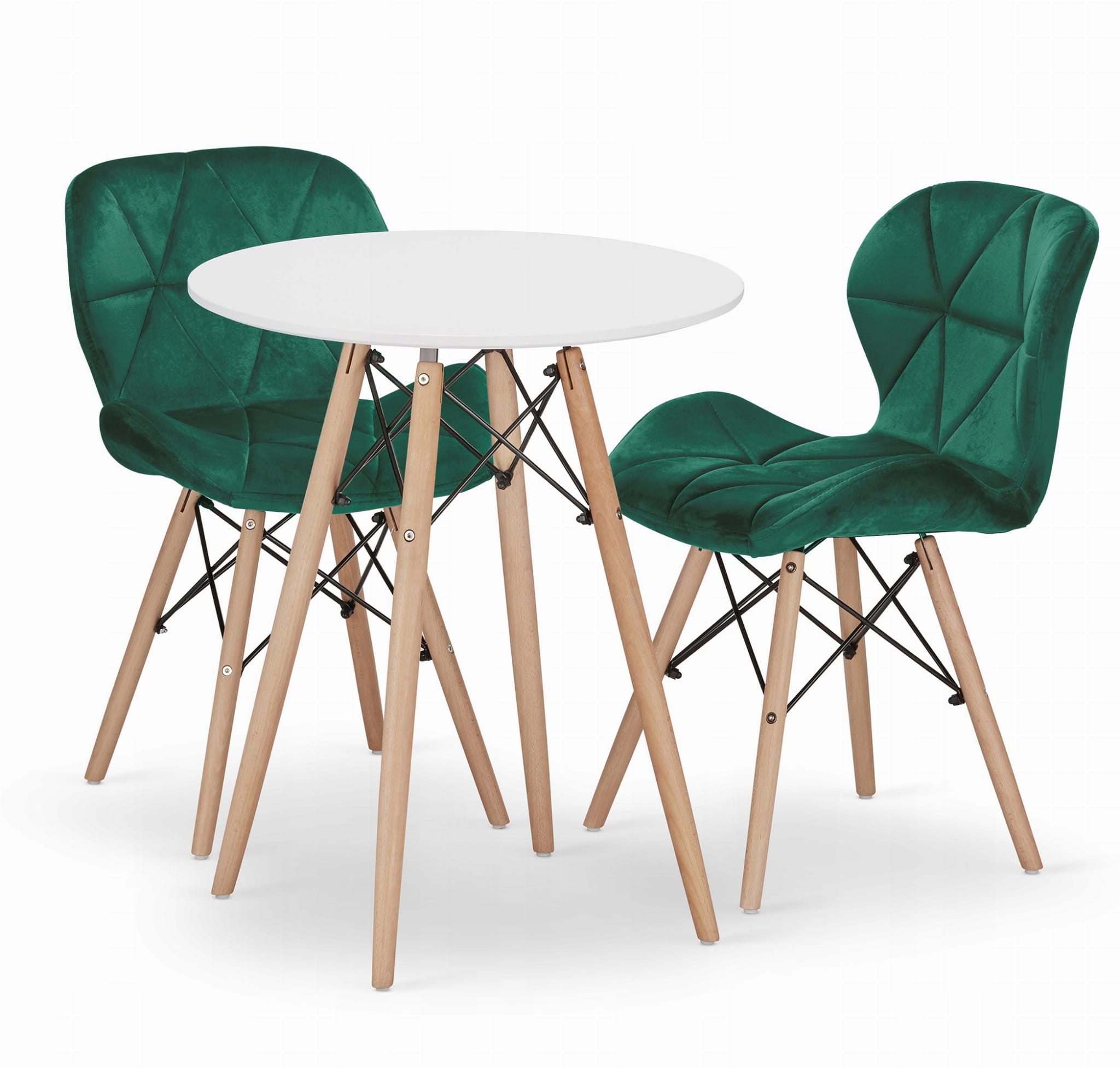 Zestaw stół okrągły TODI 60 biały + 2 krzesła LAGO zielone