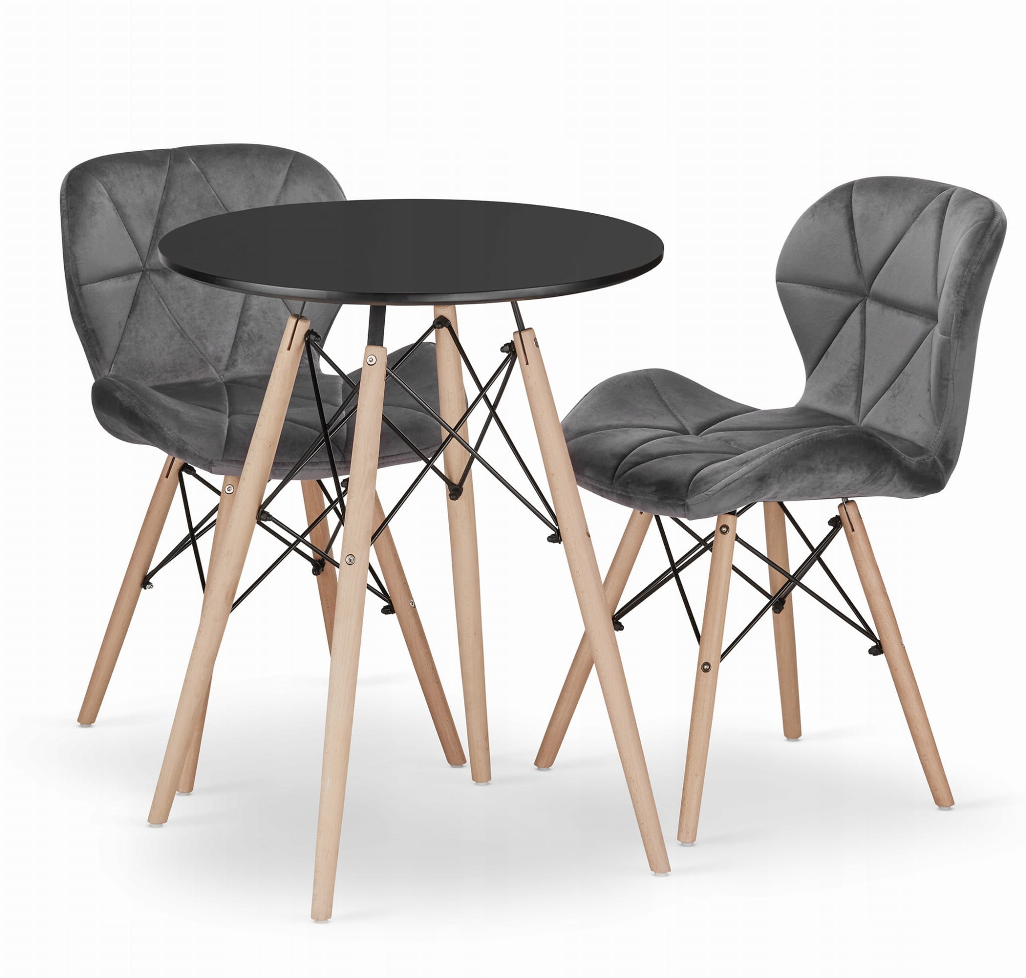 Zestaw stół okrągły TODI 60 czarny + 2 krzesła LAGO szare: