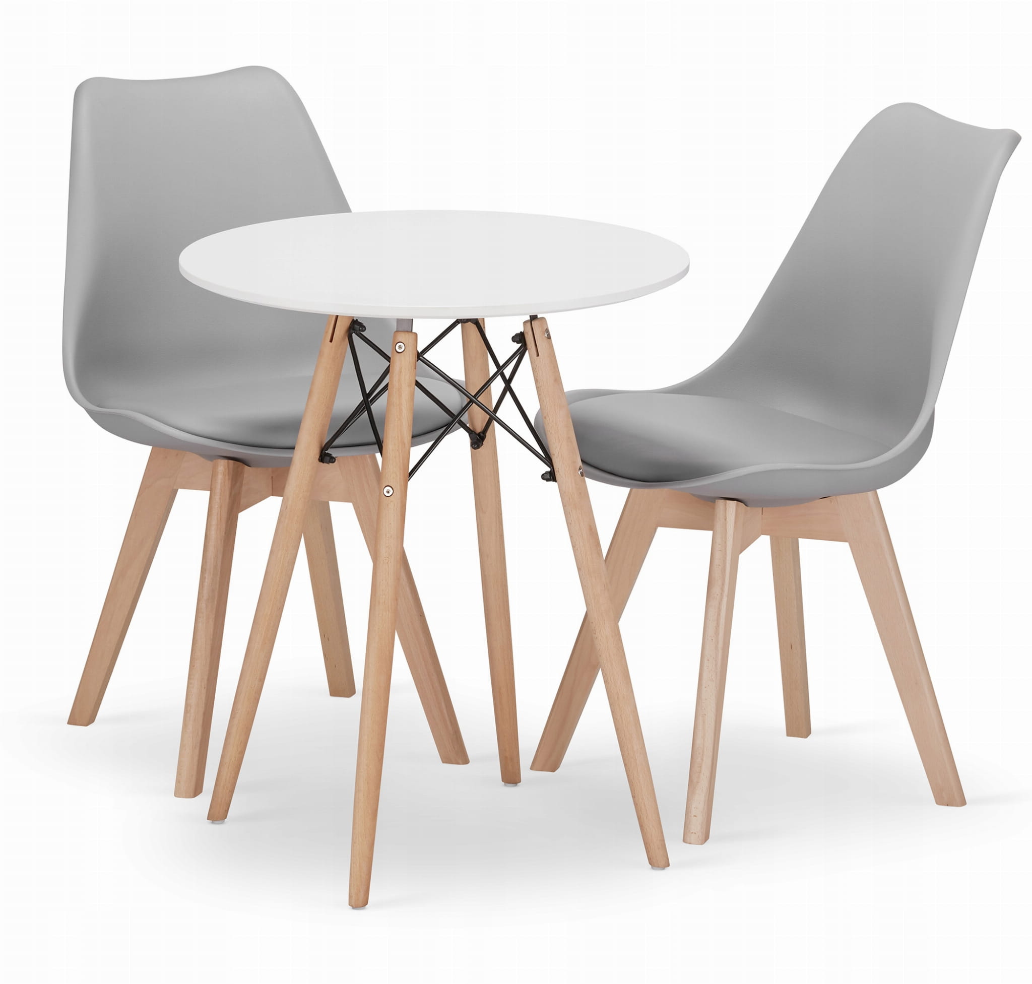 Zestaw stół okrągły TODI 60cm biały + 2 krzesła MARK szare: