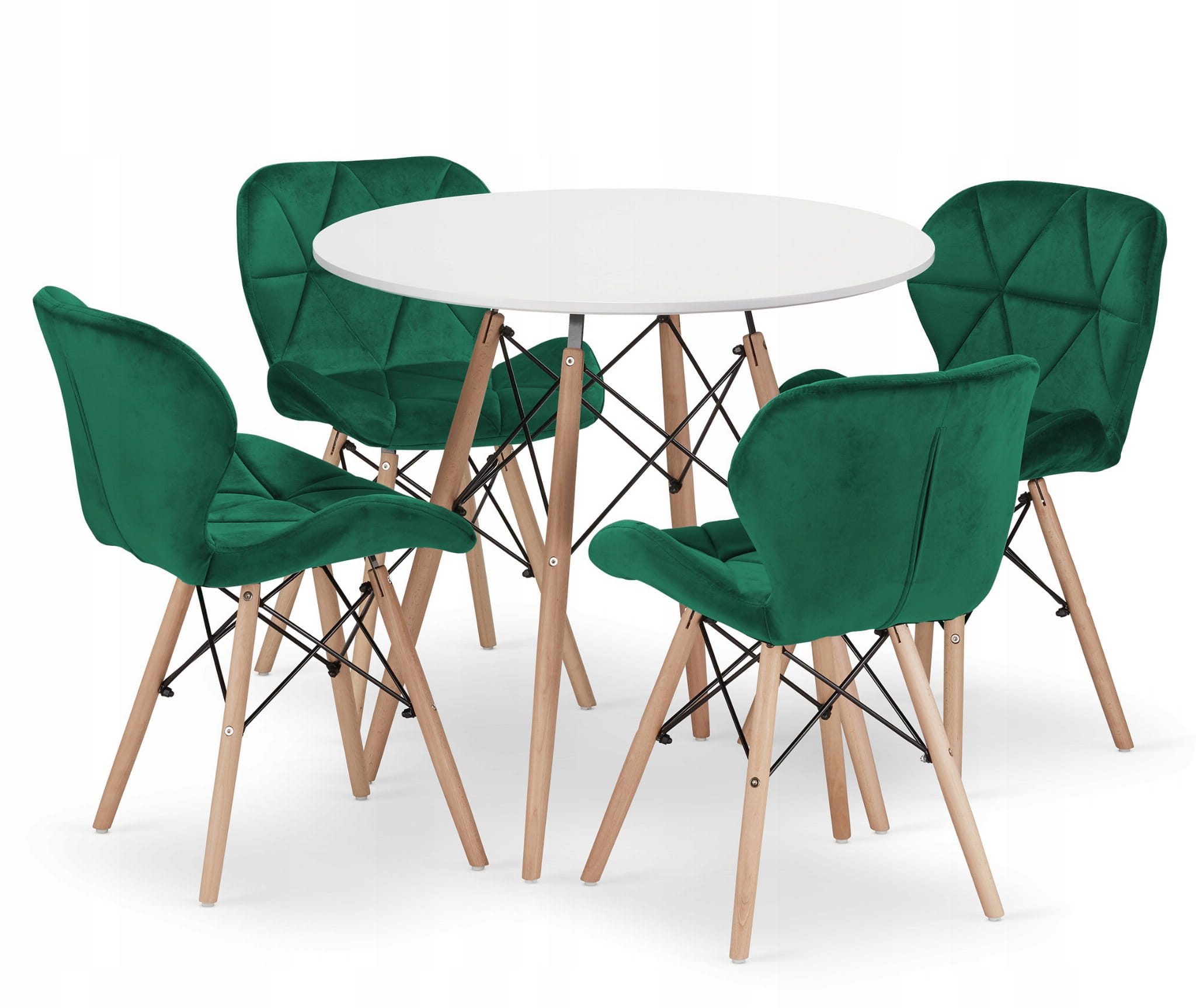 Zestaw stół okrągły TODI 80 biały + 4 krzesła LAGO zielone:
