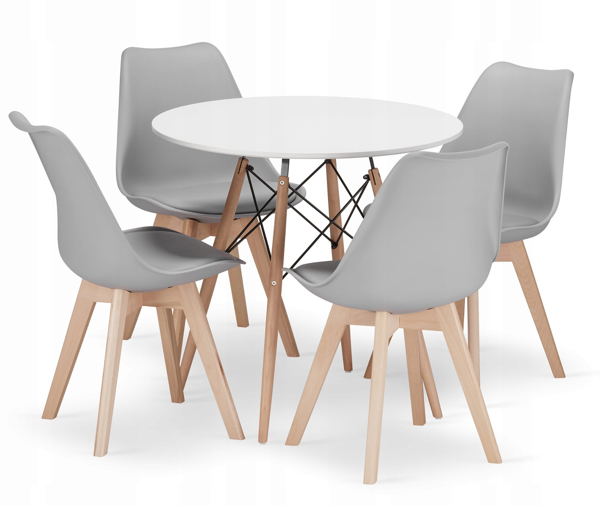 Zestaw stół okrągły TODI 80cm biały + 4 krzesła MARK szare